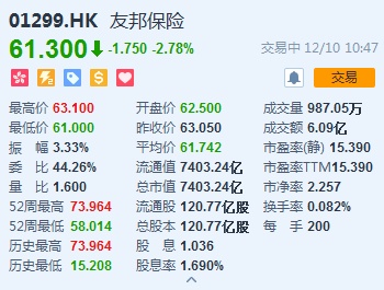 蓝筹股方面,腾讯(00700)跌1.29%,报306.6港元,拖累指数37点,成交额达21.45亿。友邦保险(01299)跌2.78%,报61.3港元,拖累指数66点。