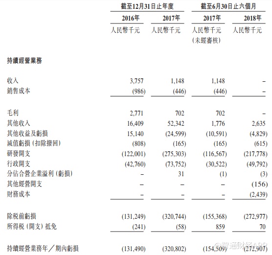 往绩记录期内,公司并未商业化任何药物,因此并未因出售药物产品有任何收入。在截至2016年及2017年12月31日止年度以及截至2017年及2018年6月30日止六个月分别确认收入约380万元、110万元、110万元及零。