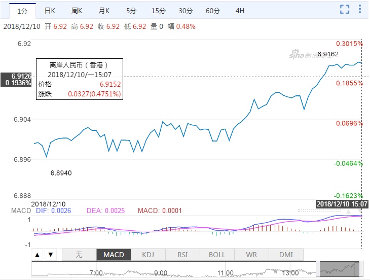 智通财经APP获悉,离岸人民币兑美元跌破6.91关口,截至发稿,离岸人民币跌327个基点,报6.9152。