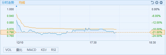 智通财经APP获悉,创毅控股(03992)明日(12月11日)将于香港上市,于上市前夕,富途证券交易软件显示,其暗盘开始后,股价一路向下,截至发稿跌21%,报0.79港元,成交额518万港元。