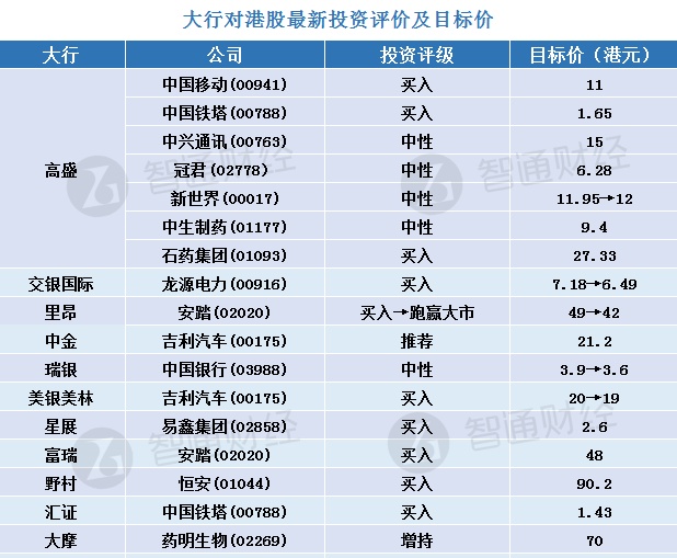 三、瑞银对内地电力股最新投资评级及目标价汇总