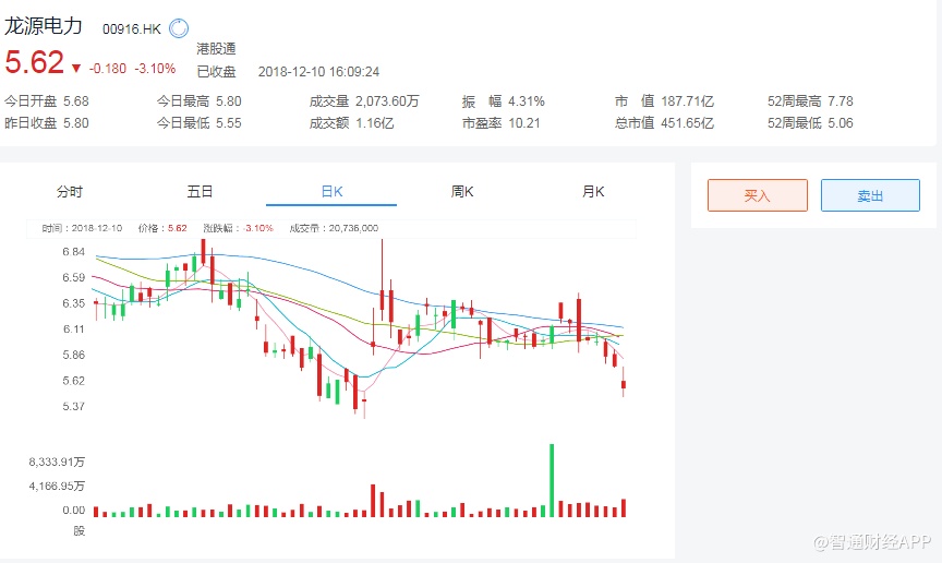截至今日收盘,龙源电力(00916)报5.62港元,跌3.10%。