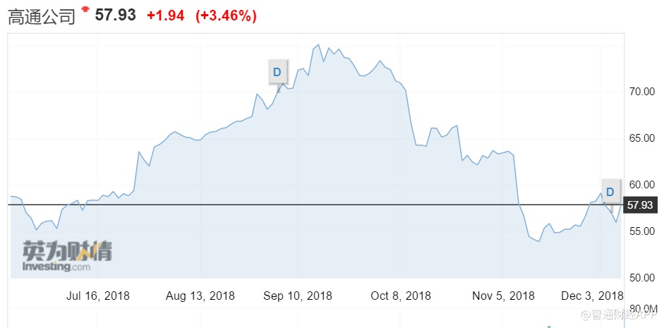 高通盘前涨超3%,苹果则开盘大跌逾3%。截至发稿,高通涨3.46%,苹果跌1.55%。