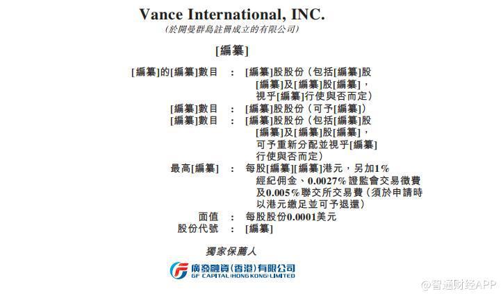 智通财经APP获悉, Vance International港交所递表于12月10日向港交所递表,独家保荐人为广发融资(香港)。
