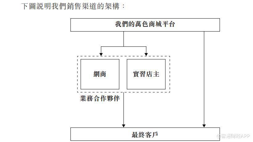该公司自称,截至最后实际可行日期,其拥有逾35000位业务合作伙伴,其中20000位正式业务合作伙伴(网商),及逾15000位潜在业务合作伙伴(实习店主)。大部分销售通过该家公司的网商进行,且其大部分服务乃为网商服务。