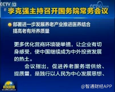 11月28日,国务院常务会议召开,会议上再次强调要进一步发展医养结合,提高老有所养的质量。