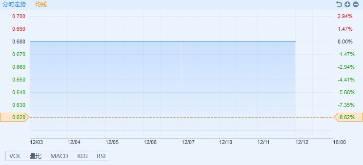智通财经APP获悉,久泰邦达能源(02798)首日挂牌,截至9时20分,跌8.82%,报价0.620港元,成交额322.76万港元。