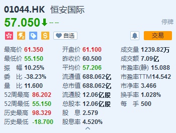 港股异动︱恒安国际(01044)遭沽空股价大跳水 现已停牌