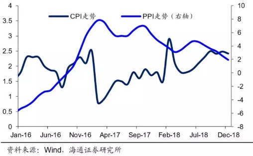 中美的宏观数据也在不断验证基本面下行的趋势。国内通缩风险升温,11月的CPI和PPI均大幅回落,海通的姜超预计19年PPI将降至0以下。在食品价格方面,蔬菜和猪肉价格持续回落,也带动CPI走低。