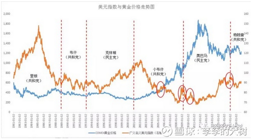 肉眼可见,凡美元走弱、美国经济下行,黄金价格就会走高——乱世买黄金的直观写照。