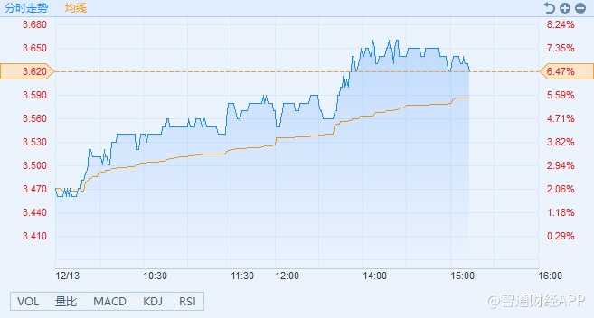 智通财经APP获悉,大摩表示,看好铜在19年表现,预计2019年铜价平均在每吨6801美元,截至15时14分,五矿资源(01208)涨6.47%,报价3.62港元,成交额4270.37万。