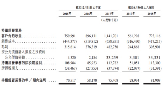 庞大的市场需求是公司发展的基石。智通财经APP观察到,2015-2017年,公司的客户合约收益从7.6亿元(人民币,单位下同)增至11.4亿元,三年复合增长率达22.5%;与此同时,公司期内净利润从7051.7万元增至7540.8万元,基本保持稳定。