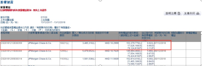 智通财经APP获悉,联交所股权变动资料显示,三生制药(01530)于12月7日获摩根大通增持348万股,
