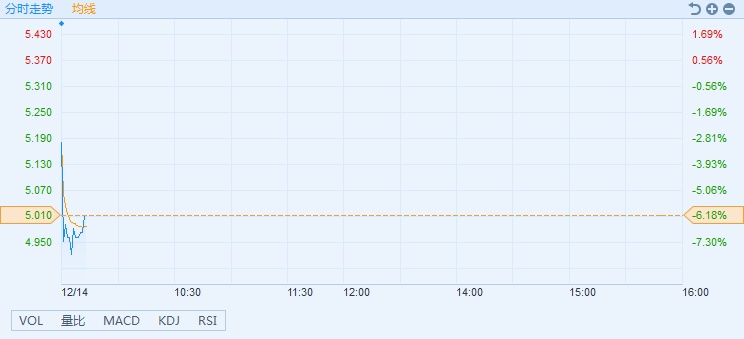 智通财经APP获悉,中航科工(02357)折让8.24%配售H股,早盘股价受挫。截至9时41分,跌6.18%,报价5.01港元,成交额1.11亿。
