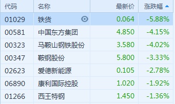 德银将中国东方目标价由10元降至8.8元,马钢目标价由5.7港元降至5.4港元,评级均为“买入”。鞍钢(00347)评级从“买入”降至“持有”,目标价由10.2元削至6.1元。