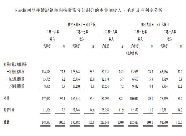 根据招股书披露,润利海事为香港海事服务供应商,拥有逾20年营运历史。其所提供服务包括:1.船舶租赁及相关服务;2.船舶管理。于往绩记录期间,该公司所有收入均来自香港,并以港元计值。根据易普索报告,润利海事于2017年在香港本地船舶租赁行业拥有的市场份额约为4.2%。