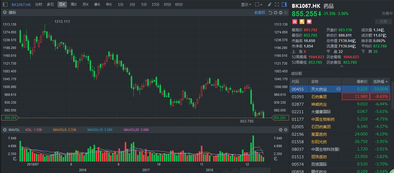 这个年关对医药股而言似乎异常难熬,因为“4+7”大屠杀带来的“恶果”还未修正,却又遭到辅助用药的“坑杀”。双重“叩击”之下,医药股以“跑路之速”继续坐稳跌幅榜。智通财经APP观察到,截止目前7个交易日,港股医药板块已经下挫了近15%,涉及金额多达200亿港元。