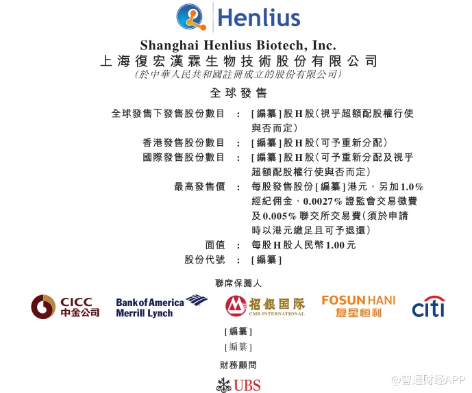 智通财经APP获悉,上海复宏汉霖生物技术股份有限公司-B今日(12月14日)向港交所递表。中金、Merrill Lynch Far East Limited、招银国际、复星恒利和花旗为联席保荐人。瑞银为其财务顾问。港交所要求“未盈利的生物科技上市公司”在其股票简称后添加特别的标记B。