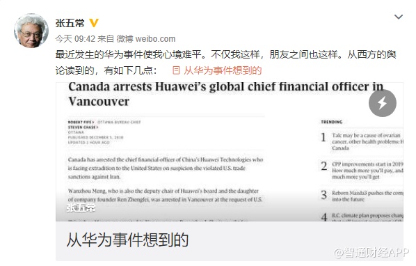 智通财经APP获悉,近日,华为事件引起广泛关注,知名经济学家张五常对此发表其看法:
