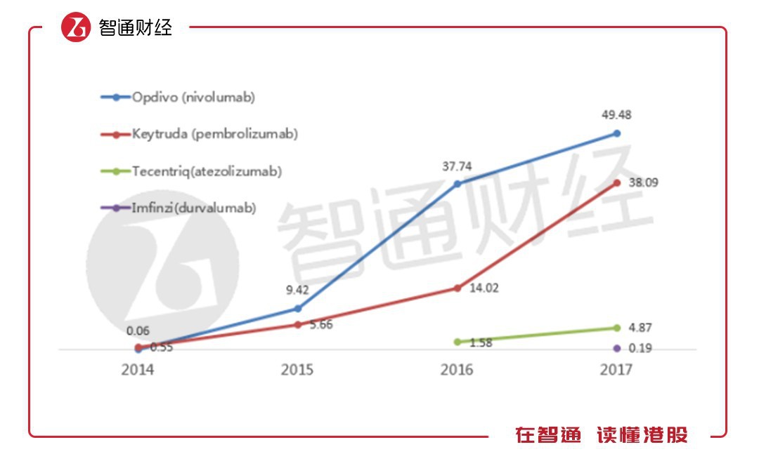 智通财经APP看到,从销售收入上看,PD-1/PD-L1药物的全球市场规模只用了3年时间就扩张到了超过100亿美元,增长极其迅猛。并且以PD-1为代表的肿瘤免疫疗法目前已经成为肿瘤临床治疗的核心治疗方案。预计2020年整个PD-1/PD-L1类药物市场需求将超过数百亿美元。