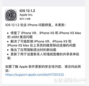 智通财经APP获悉,今日早间,苹果(AAPL.US)发布了最新的iOS操作系统12.1.2,iOS 12.1.2包含iPhone问题修复,其中一项是推出了应用强制退出时的新动画,目的是避开高通的专利。