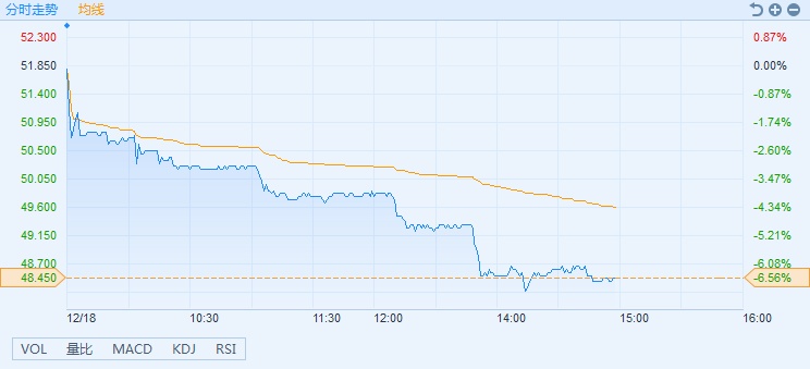 智通财经APP获悉,次新股美团点评(03690),盘中一度跌至48.25港元,再创上市新低,截至14时56分,跌6.56%,报价48.45港元,成交额2.98亿。