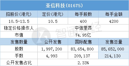 智通财经APP获悉,12月18日,电信软件产品及相关服务供应商亚信科技(01675)配售结束。配售招股价区间为10.5-13.5港元,最终定价10.5港元,每手4200港元。