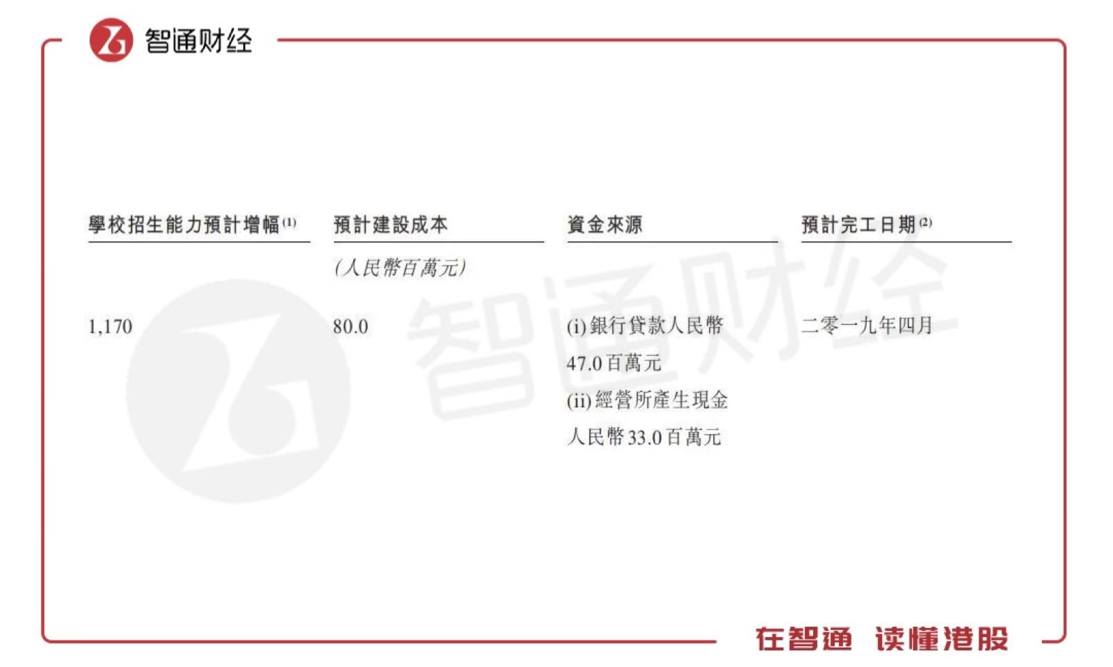 招股书显示,新校区预计可以为学院增加1170名学生的招生能力,如果实现满额招生,按照2017/2018学年的学费和住宿费计算,一年可为学院增加约3000万元的收入。