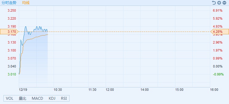 智通财经APP获悉,中国外运(00598)附属外运香港拟出资3.5亿人民币,携手招商局附属设立合资公司,早盘股价造好。截至10时18分,涨4.28%,报价3.17港元,成交额1311.43万。