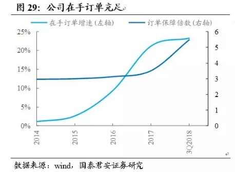 微观来看,公司的在手订单充足,截至2018年3季度,公司在手订单2.68万亿,较2017年三季度末增长23%,订单保障倍数5.47倍,且近年来逐年上升。