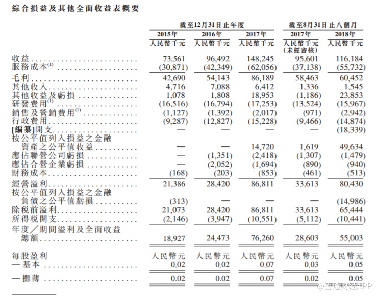 2015年至2017年,该公司实现营业收入分別为7356万、9649万、14824万;实现净利润分別为1892万元、2447万元和7626万元。但到了2018年一季度营收出现放缓迹象,今年一月初至四月底营收只有0.51亿元,同比下滑了约20%。