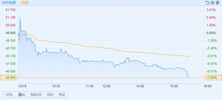 智通财经APP获悉,H&H国际控股(01112)持续走弱,股价跌半成,截至15时33分,跌7.01%,报价46.4港元,成交额5116.29万。