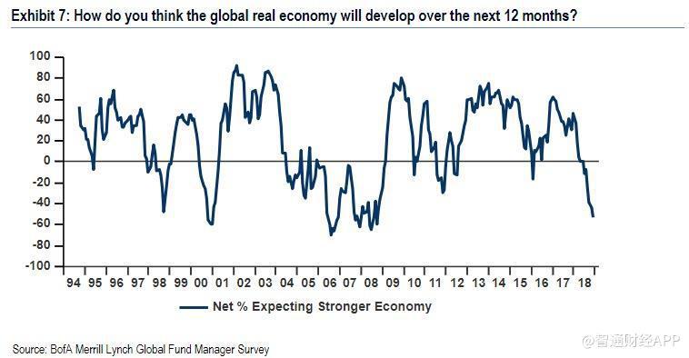 智通财经APP获悉,本月美林美银全球基金经理人调查显示,有一半以上(近53%)的受访者认为未来12个月美国的经济增长将持续走弱。此次调查结果是自2008年10月全球经济危机以来最悲观的一次。