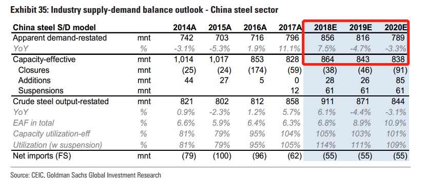 供应方面没有太大的变化,新项目的产能大约是710万吨,包括置换产能、特别批准,以及一小部分尚未批准的。根据高盛的调研,近一半的产能还在早期阶段,还未开始建设。高盛预计2018-2020年新增产能110-130万吨之间,占市场现有产能的3%。