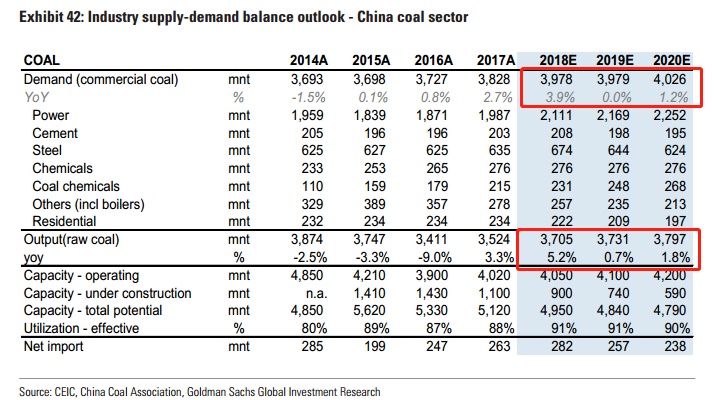 供应方面,产能的释放或是关闭计划仍然取决于发改委的计划,考虑到此前煤炭供应进展,高盛预计发改委会同意增加煤炭产能。
