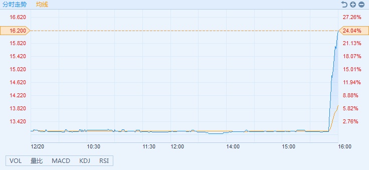 智通财经APP获悉,佳源国际控股(02768)尾盘直线拉升,股价创历史新高。截至15时59分,涨24.04%,报价16.2港元,成交额5483.04万。