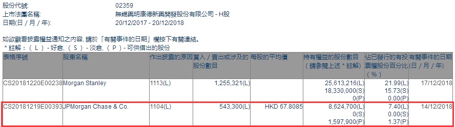 智通财经APP获悉,根据联交所资料显示,摩根大通于12月14日增持药明康德(02359)54万股,每股作价67.8085港元,总值约3661.66万港元,最新持股数目862万股。