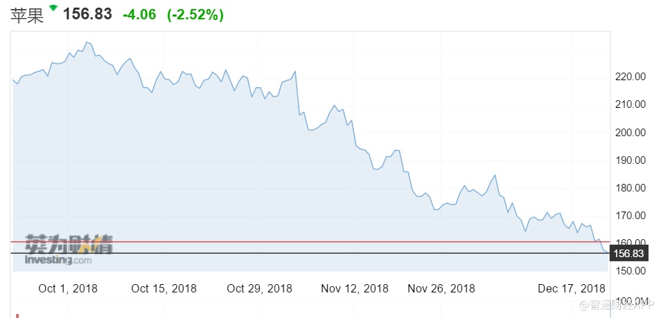 苹果股价周四收跌2.52%,报156.83美元。其市值已降至不到8000亿美元,低于微软。