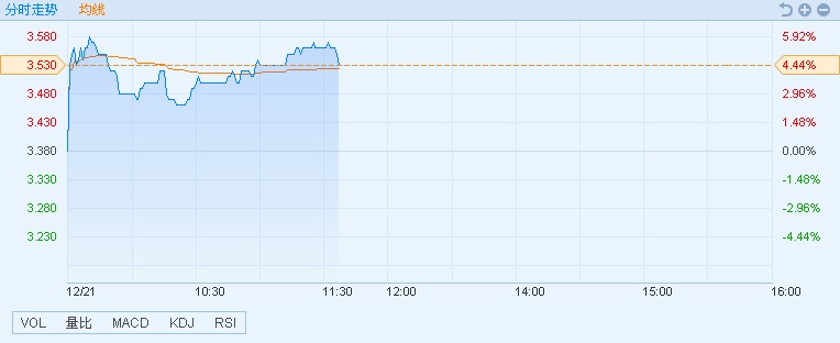 智通财经APP获悉,中粮包装(00906)早盘显著放量,平开后直线拉升,截至11时32分,跌涨5.33%,报价3.560港元,成交额1315.23万港元。