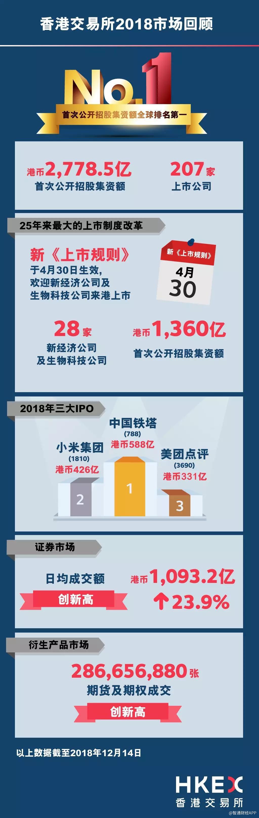 香港交易所今天公布2018年1月1日至12月14日的市场统计数据。今年重点包括: