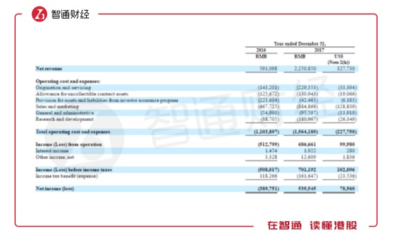 智通财经APP了解到,根据GAAP,2017年公司净收入达22.5亿元人民币,同比增长280.8%;公司同期净利润达5.4亿元,同比大幅扭亏。