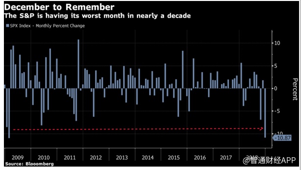 尽管美国经济数据不算太差,股市却在持续下跌。经济学家预计第四季度美国生产总值增长为3.1%,标普500指数自9月份以来却下跌了16%。这可能是自2010年以来第一次出现经济增长而股市下跌的情况。