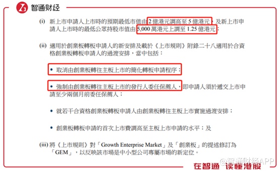 (1)市值和持股要求:预期最低市值由2亿港元提高至5亿港元,最低公众持股市值由5000万港元提高至1.25亿港元;
