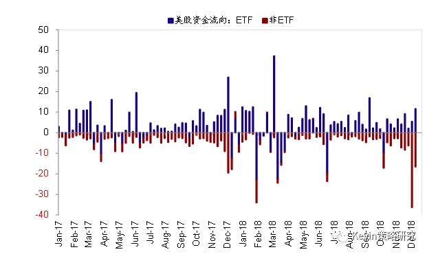 首先,本周美股市场的连续下跌是投资者悲观情绪和仓位调整因素的进一步释放。继前一周大幅流出362.5亿美元之后,本周EPFR追踪的美股主动型资金再度大幅流出165亿美元(尽管ETF资金依然有流入),这也表明随着市场的持续动荡叠加临近年末因素,主动型管理机构仍在大幅降低仓位。但与此相对应的是,由于10月份以来的连续波动使得投资者信心缺失且采取观望态势下买盘的缺失,更容易造成因为资金撤出卖盘压力造成的剧烈波动。