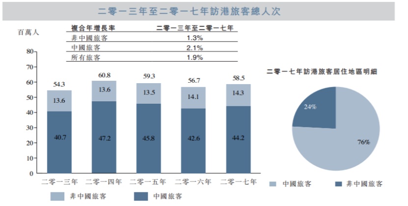 其中,大陆游客才是商铺的购买“主力军”,而他们也正是公司能在短短5年内实现从仓库到上市公司这一“涅槃”过程的重要推手。数据显示,2017年访港的中国旅客占当期访港总游客数的76%。