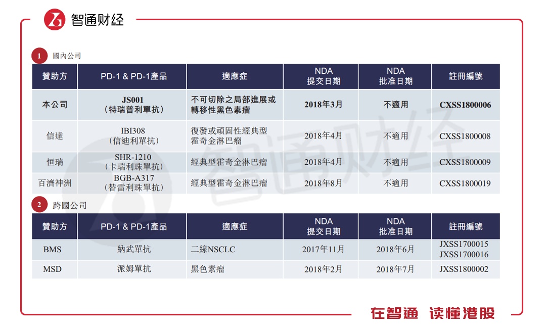 而在本土品牌药中,除了君实生物外,信达生物-B(01801)的IBI308、恒瑞医药(600276)的SHR-1210均在2018年4月递交了新药申请,百济神州的BGB-A317已于2018年8月递交新药申请,按照进度来看,信达、恒瑞、百济距离新药上市获批也不远了,君实生物与其他5家企业形成竞争在所难免。