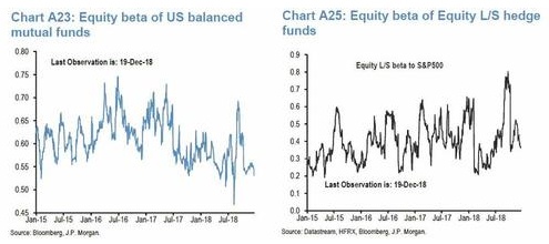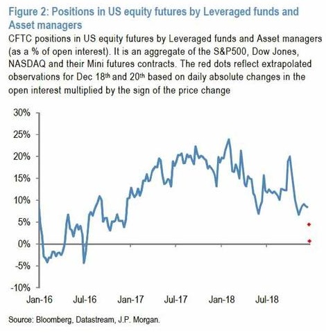 2.摩根大通另一位策略师Nikolaos Panigirtzoglou,于上周五晚些时候写道,在美股遭受数月的重创后,机构投资者有最后投降的迹象,也就是说:从立场来看,市场已经接近于投降情绪,特别是机构投资者。这从对冲基金和平衡型共同基金的股票贝塔系数,及美股期货的投机性头寸可以看出来。