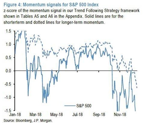 更重要的是,据以下摩根大通的趋势跟踪信号框架显示,标普500指数期货的短期和长期动量信号均处于深度负值区。