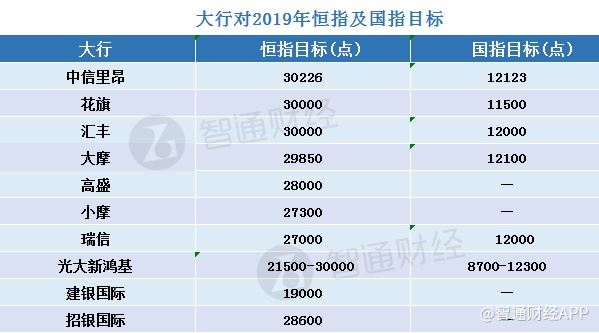 2019港股展望:大行对明年恒指目标审慎 最高超过30000点