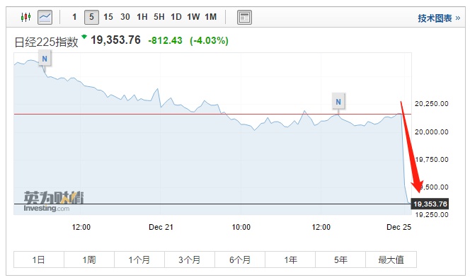 智通财经APP获悉,隔夜美股暴跌,受此影响,日本日经225指数低开1.9%,报19785.43点,为2017年9月中旬以来首次失守2万点。之后跌幅不断扩大,截至发稿,日经225指数跌超4%。